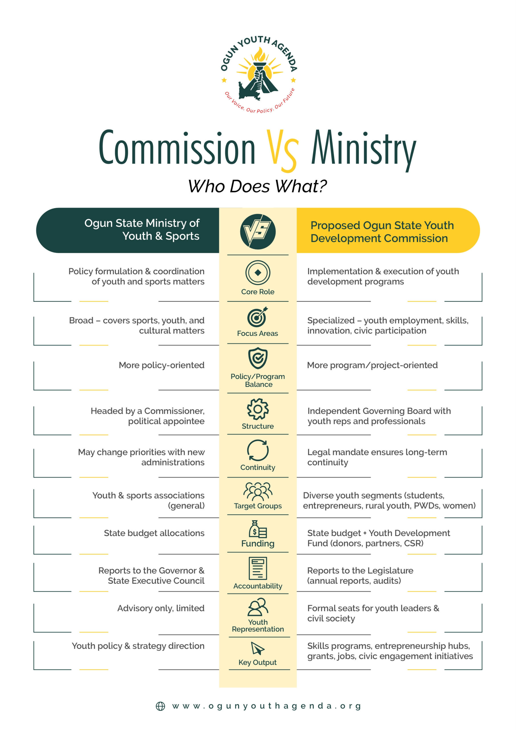 A: Yes. Lagos State has a Ministry of Youth & Social Development with supporting agencies, while Ekiti recently adopted a youth policy. Ogun deserves a structure tailored to its own needs.